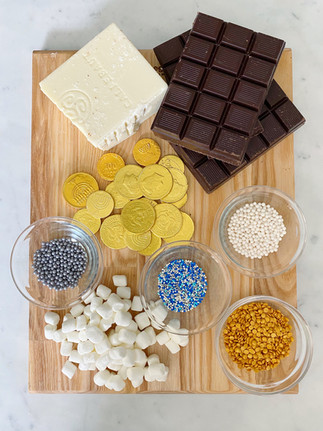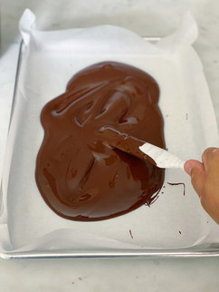 Equipment: cutting board; chef’s knife; (2) rimmed sheet pans; parchment paper; double boiler or microwave safe bowl; offset spatula; spoon