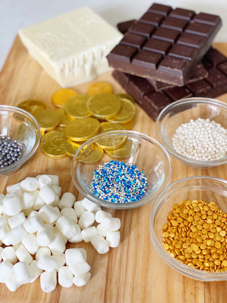 16 chocolate gelt (coins) blue and white sprinkles or nonpareils