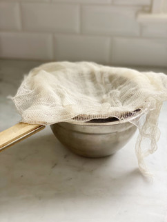 1. First, make the butter. Set a strainer over a bowl and set aside.